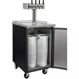 - Can hold two quarter slim kegs or up to four 5 gallon kegs with external nitrogen tank